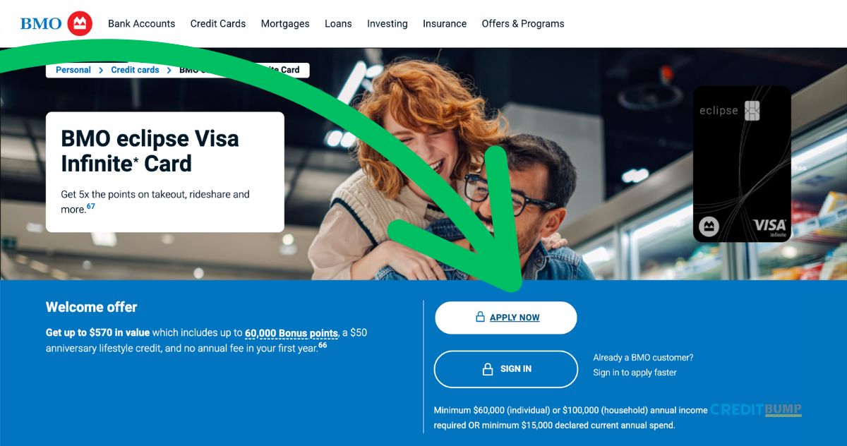 - Visit the Official BMO Page: Navigate to the BMO eclipse Visa Infinite Card application page.