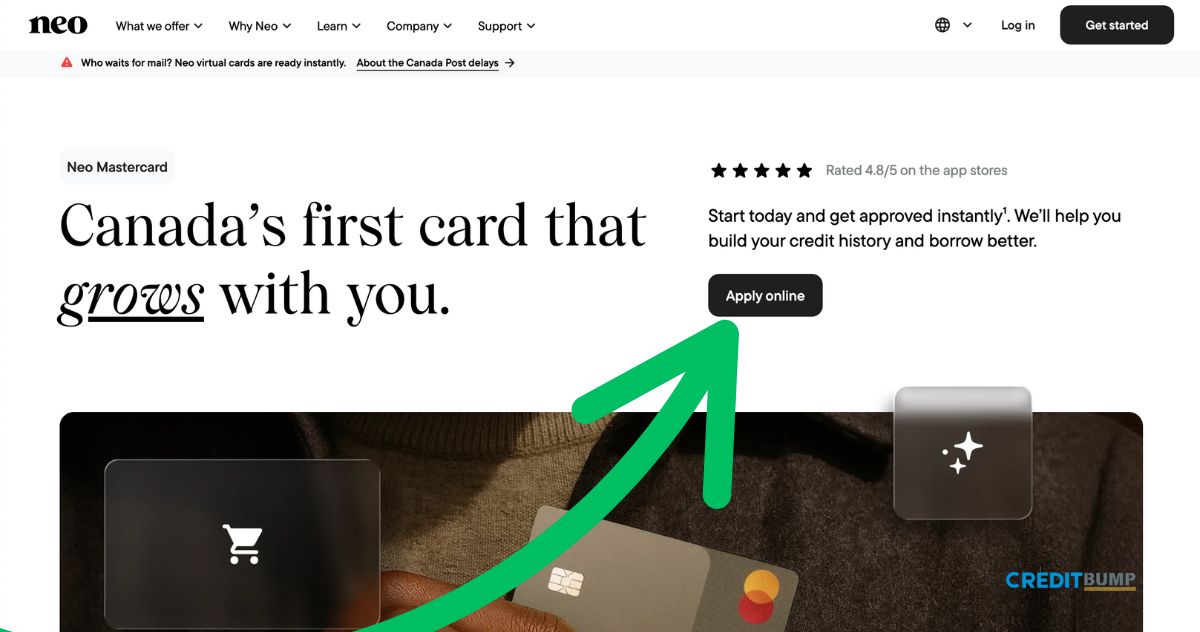 - Visit the Neo Financial Website: Navigate to the “Neo Credit” card page.